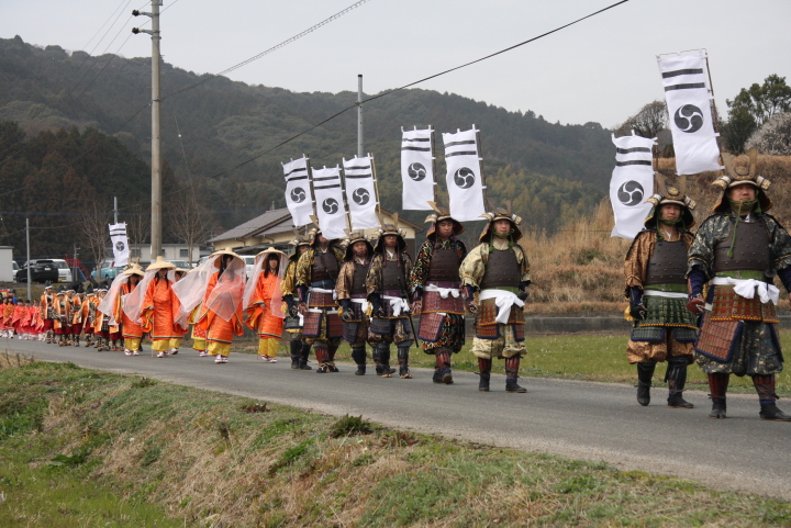 25日の13時頃から、武者や女官、若武者などの行列が練り歩く「武者行列」が実施されます。